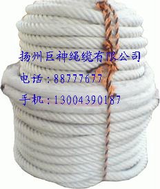 尼龙粗单丝六股复合缆绳是新型合成纤维复合产品。品种有锦纶复丝/尼龙单丝、丙纶长丝/尼龙单丝、涤纶/尼龙单丝等系列产品。该产品是经过特定的加工工艺制作,具有卓越的抗耐磨性能。加之耐酸碱、耐化学腐蚀、耐紫外线辐射、耐温差等优点,已经得到船舶系泊、拖拽的广泛应用。