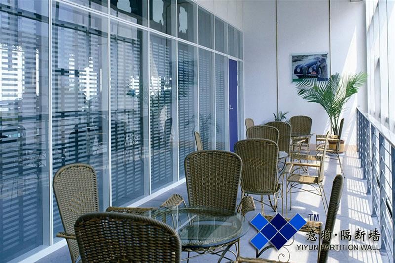 单层玻璃隔墙系统其单一的清玻璃让整个空间显得美观大气,光线通透,令人油然而生舒畅的惬意,而清玻与雾玻的交替使用以隔离视线,使得隔间内外之间产生一种心理距离,正符合表现办公室文化神密与理性的一面,也表达出办公室文化严肃现活泼的另一面。