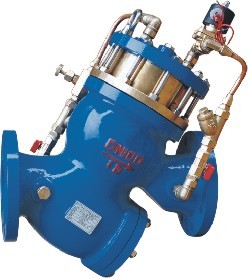 YQ98006过滤活塞式电磁控制阀由主阀、电磁导阀、针阀、球阀、微形过滤器组成水力控制接管系统。通过电磁导阀可以实现对阀门开启和关闭的遥控。当阀门从进口端给水时,水流流过针阀进入主阀上腔控制室,当电磁导阀打开时,控制室内的水经电磁导阀、球阀流出。球阀开度大于针阀开度,主阀上腔控制室内压力变低,主阀处于全开状态。当电磁导阀关闭时,主阀上腔控制室的水不能流出,控制室升压,推动活塞关闭主阀。本产品利用导阀控制阀门的开启和关闭,反映准确快速,采用三向电磁阀,维护简单。安装于各类给水系统的管道上。