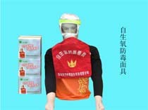 自生氧防毒面具是我公司研制生产的专利产品(专利号95245475.0),用于一切灾害造成的缺氧场合,是一种逃生工具和短时进入有害气体泄漏空间排除故障的个人呼吸保护工具。面具的外置部分采用进口铝箔阻燃复合材料,具有阻燃防热辐射的功能。其独特的氧烛启动装置,更能保证在1分钟之内使氧气袋内充满氧气,以保证佩戴者快速安全地逃离灾害现场。