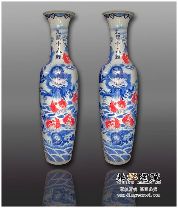 景德镇陶瓷大花瓶适应大场所,大场面。陶瓷大花瓶,送亲友、企业单位开业庆典、酒店宾馆摆设、店铺开张、建筑落成、工程竣工、门厅装饰、厂房大门装饰等必不可少的气势磅礴的陶瓷工艺精品。不管在颜色方面还是造型上都搭配非常协调。从档次上考虑,景德镇陶瓷大花瓶为全手工制作,包括胚胎都是非常考究的,如此具有气势而且纪念意义非凡的陶瓷大花瓶,是公司之间、客户之间、朋友之间礼尚往来的见证,是往来嘉宾关注的焦点,特点就在于它的大气,保存时间长,走哪都能看到,欣赏率高,让大家都会记得您的大礼吧!