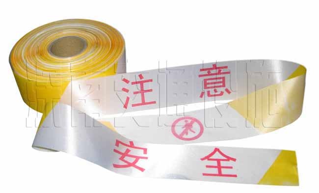 颜色:底色为黄/白,文字为红色“注意安全”“警戒线"字样。