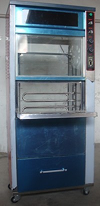 2010年最新款烤地瓜机烤地瓜机最早出现在台湾,于2006年引进大陆。逐渐取代了传统的铁皮桶烤地瓜,成为新一代烤烤地瓜机主要由烤箱和保温箱组成,烤箱部分由电机,链轮,挂篮,发热管组成,烤地瓜机机身都有保温层,顶部或侧部有灯泡照明。烤地瓜所用的电源为220v照明电源。