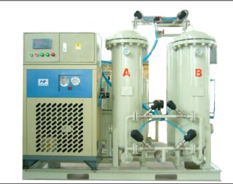 HTO系列变压吸附制氧设备采用优质沸石分子筛为吸附剂,利用变压吸附原理,直接从压缩空气中获取氧气。当吸附塔内吸附的氮等杂质达到一定程度后,降低压力使沸石分子筛解吸,是吸附剂再生,得以重复循环使用。采用两个吸附塔在PLC的控制下循环工作,连续产出高品质氧气。