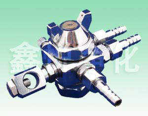 喷嘴的内部有气动式活塞机构,活塞上方装有一支不锈钢喷针,活塞后方装有一组高张力弹簧。压缩空气停止供应时,弹簧将活塞及喷针向前顶住,喷针与喷嘴以高精度的紧密配合阻断液体通过,反之,压缩空气的压力,将活塞推开,喷针与喷嘴有间隙让液体喷出,液体与雾化空气接触产生雾化效果。喷枪活塞动作用空气与雾化用空气共用,压缩空气的压力必须高于活塞弹簧的弹力(2Kg/cm2 )喷枪才能正常工作。