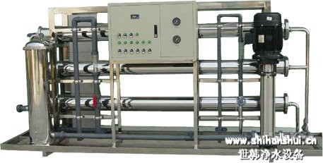 世韩纯净水生产系统采用多介质过滤器、活性炭过滤器作及保安过滤器作为前级处理,有效除去原水中的悬浮物、泥砂、微粒、有机硅胶体、有机物、异味、余氯等杂质,使经过处理后的原水符合反渗透的进水要求,然后进入程控反渗透装置去除水中的溶解性盐类物质、细菌、热源等,再经过臭氧杀菌系统将一定浓度的臭氧溶于水中产生持续的杀菌能力, 成品水符合国家瓶(桶)装饮用水水质要求,设备符合国家QS认证标准。