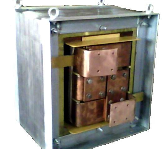 结构特征:本系列产品的初级线圈一般为圆筒式,次级一般为裸导体弯制成的螺旋式线圈,初级线圈一般无调压抽头,次级线圈电压的变换是由串、并联接而达到,线圈连接组合均为 1/1—12。变压器铁心一律采用心式铁心,由电工硅钢片迭积而成,铁柱采用多级阶梯的圆截面;铁芯采用矩形或凸字形截面。在上、下铁轭的正、反两侧利用型钢作夹件,通过夹轭螺杆以达到压紧铁心的目的。