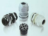 螺牙规格 : 公制牙 ( Metric ) 及G (PF / BSP / PS)牙及PG牙。产品材质 : A.C.E.F 部分以 UL 认可之尼龙 PA66 制成 ( 防火等级 UL 94V-2 ),B 及 D 部分采用 EPDM 耐候橡胶制成。颜色种类 : 黑色及灰色。工作温度 : -40 o C 至 100 o C 或瞬间可耐热至 120 o C。产品特性 : 特殊夹紧爪与夹紧圈之设计,夹紧电缆范围大,抗拉力特强,可防水、防尘、抗盐、耐弱酸、酒精、油、油脂及一般溶剂。弯角造型 : 可使用於具弯角之环境,所用之固定头。