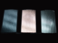 特点:双面均为平面玻璃,图案嵌入其中。其中一面可以触摸到图案纹路,结合玻璃的折射反光特性,大大增强图案的立体效果。