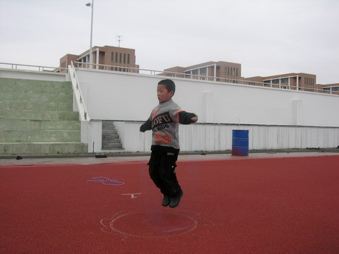 半圆式田径场有两个圆心,都在纵轴线上,与中心点距离相等.它是弯道内突沿,外突沿和各分道线的圆心.应以固定标志标出来,以备使用.