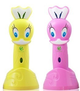1、点读笔在书本上轻轻一点,书本就发出标准、清晰、明亮的声音,吸引孩子主