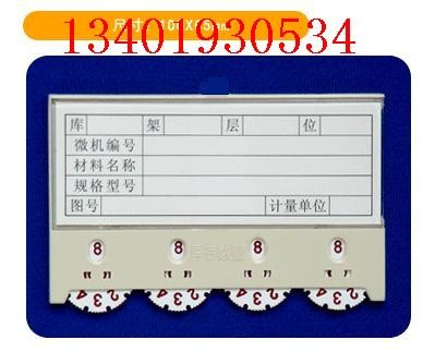 磁性货架卡、磁性材料卡、塑料标签牌--1 3 4 0 1 9 3 0 5 3 4/0 2 5 8 3 3 6 4 7 2 1/0 2 5 8 5 5 6 1 5 7 5/1 3 3 8 2 7 6 1 7 3 6 由ABS工程塑料制成, 广泛应用于机关、部队、企事业单位的仓储管理。它背面特有的强磁材料,可以直接吸附在货架上,下部有记录库成量的转盘,规格有A、B、C、D、E、F、G、H、等,可以使它直接吸附在铁质货架上,上半部份插卡片,记录材料名称、规格、型号,下半部份转盘显示库存数量,转盘有定位,有A型、B型、C型、D型、E型、F型、G型、H型、K型,E型可以直接记录入库、出库、库存量,适用于企业的认证、升级、创一流。该产品经全国各地供电局、电厂、炼油厂、钢铁厂、造纸厂、电子企业、机械制造业、自来水公司等单位使用效果良好.敬请来电来函联系.更多详细资料请登陆我公司网站,谢谢!--1 3 4 0 1 9 3 0 5 3 4/0 2 5 8 3 3 6 4 7 2 1/0 2 5 8 5 5 6 1 5 7 5/1 3 3 8 2 7 6 1 7 3 6