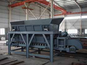 喂料机在生产流程中,可把块状、颗粒状物料从贮料仓中均匀、定时、连续地给到受料装置中去,在砂石生产线中可为破碎机械连续均匀地喂料,并对物料进行粗筛分,广泛用于冶金、煤矿、选矿、建材、化工、磨料等行业的破碎、筛分联合设备中。