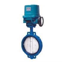 ⊙中线密封蝶阀结构特征(A) 驱动器连接法兰:适用于手动、蜗轮蜗杆、电动、气动连接装置(2"-24"根据ISO5211)(B) 阀杆头部连接结构:根据驱动机构的不同,有键连接,对过扁或四方结构(扁或四方适用于2"-24"(C) 轴衬:为阀杆提供支撑,可进行正向轴校正并且为制动器提供支撑.阀杆两端采用摩擦系数较小的轴衬,可减小阀杆摩擦力和阀门启闭扭矩.(D) 阀杆密封:根据工矿和介质,密封材料可选柔性石墨、PTFE或橡胶(O型圈)(E) 阀杆:DN≤24",阀杆采用一轴式结构:DN>24",阀杆采用分段(上下轴)结构.阀杆与蝶板通过销连接,可确保蝶板的开关准确定位.(F) 蝶板:蝶板采用流线型设计,上下阀杆端与阀座紧密接触,保证介质不从阀杆表面渗漏.精确的蝶板外圆与阀座精密配合,在保证密封副密封的前提下,阀门启闭力矩小,阀座使用寿命.蝶板的形状根据与阀杆的连接型式而有所不同,阀门流量系数与蝶板的结构型式有密切关系