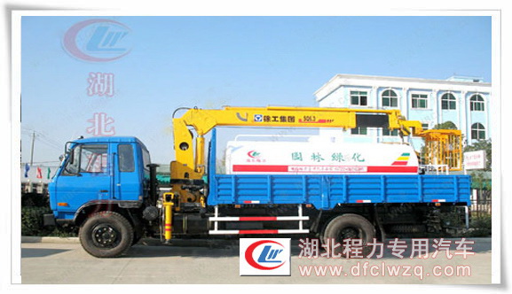 整车说明: 随车吊功能:选用程力3.2吨三节直臂吊机,工作工作半径8.1米,可举升10米,带吊栏,可实实吊运物品和高空作业。采用H型支腿,各支腿可单独调节以调整车架水平,支腿跨距大,整机稳定性好。伸缩臂前安装高空作业吊栏。