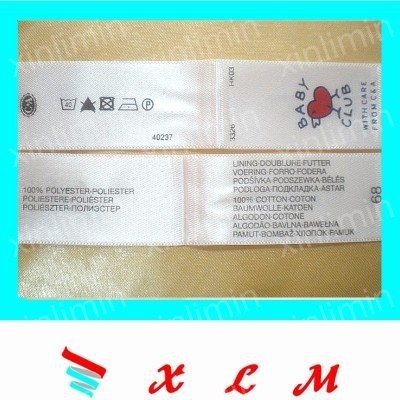 厦门新丽敏商标印刷厂专业生产双面缎标,本图为双面缎标也叫印嘜简称缎标,缎标标分为柔性缎标、丝带印唛、双面缎标、普通缎标等,一般用于服装、鞋子、包袋、玩具、毛巾、帐篷等公司。欢迎来电咨询、洽谈业务!