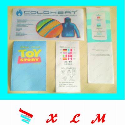 厦门新丽敏商标印刷厂专业生产涤纶水洗标,本图为涤纶水洗标也叫印嘜简称缎标,缎标标分为柔性缎标、丝带印唛、双面缎标、普通缎标等,一般用于服装、鞋子、包袋、玩具、毛巾、帐篷等公司。欢迎来电咨询、洽谈业务!