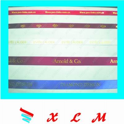 厦门新丽敏商标印刷厂专业生产涤纶带烫金,本图为涤纶带烫金也叫印嘜简称缎标,缎标标分为柔性缎标、丝带印唛、双面缎标、普通缎标等,一般用于服装、鞋子、包袋、玩具、毛巾、帐篷等公司。欢迎来电咨询、洽谈业务!