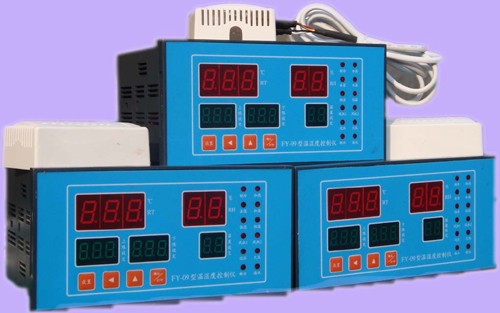 FY-09型温湿度控制仪,具有温湿度同时数字显示,控制值分别显示、定时打印记录等功能,仪表同时具有电压监测功能,缺水保护功能(内部有水位传感器输入接口,只要配接水位传感器,就可以适用需要缺水指示或报警的场合),内置循环定时器,使控制更加灵活,设备配上该仪表,将使其具有很高的自动控制功能。