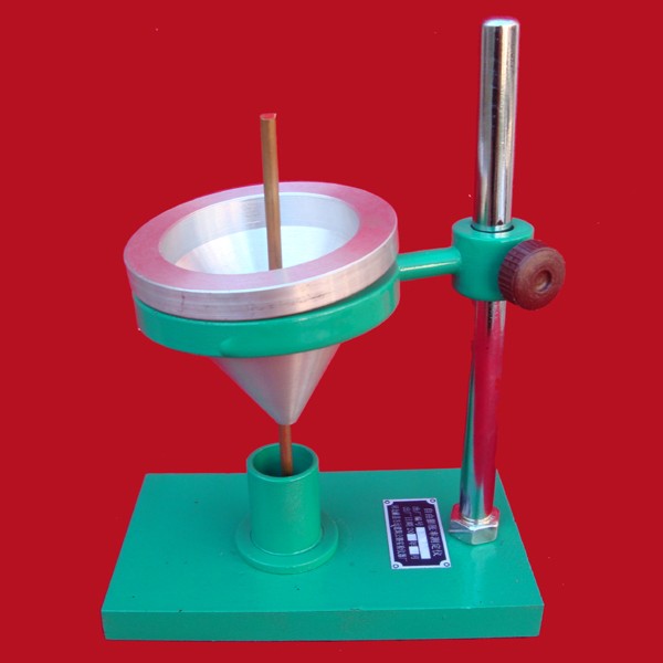 2、将无颈漏斗装在支架上,漏斗下口对正量土杯中心,并保持距杯口l0mm距离,如图所示。