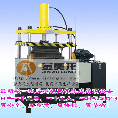 最新款专用于铝扣板集成吊顶的一次成型天花板生产设备,采用最新模具技术,可冲300X300,300X450,300X600,600X600金属天花板,集成吊顶,铝扣板,一个工人,一个工艺,一台机器就可出一个产品.厚薄材料不用调节,可针对不同的材料厚度,出货快,无废品,安全性高,是现今天花板生产厂家提高产品质量和效益的一个技术发展趋势.