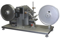 纸带耐磨试验机以专用的纸带作为摩擦介质,以固定的荷重作用于摩擦头,摩擦头透过固定直径的滚轮及定速马达驱动回转的纸带将力持续施于试样表面,直到见到表面底材或者达到特定的磨损程度,通过计数器显示的马达回转次数来评价试样耐摩性能。