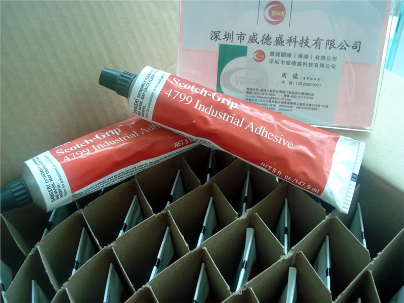 3M4799黑胶系列用于塑胶、PVC镱片等之粘接,特别适用于粘接家电的显示窗口。强度高,粘性持久,而且溶剂不腐蚀丝印油墨。3M4799 147.8ml/支 36支/箱