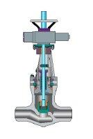 阀杆与阀杆螺母的螺纹传动采用了适度的配合间隙和独特的牙型修正处理,保证了阀门驱动的灵活性和阀门关闭状态的自锁性。在阀瓣与阀杆头部接触处,镶嵌了一块硬质不锈钢材料,使该处不至于因挤压而变形,或因锈蚀而影响阀瓣动作的灵活性。阀杆采用耐热合金钢,经锻粗和调质及表面氮化处理,有良好的综合力学性能和抗腐蚀性、抗擦伤性。
