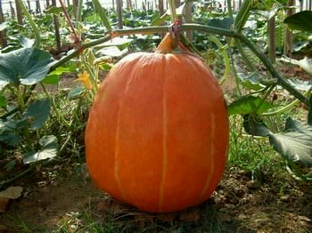 一般单瓜重100斤左右,大者达200斤以上,叶片大而厚实,瓜皮黄红色,呈黄色或橙色,高圆球形或长椭圆形。出苗旺结果强,在2002年一年一度的美国最重南瓜的评选赛上荣获第一名,一个重达1064斤的超级南瓜一举夺魁。生育期100天左右,好种易管。