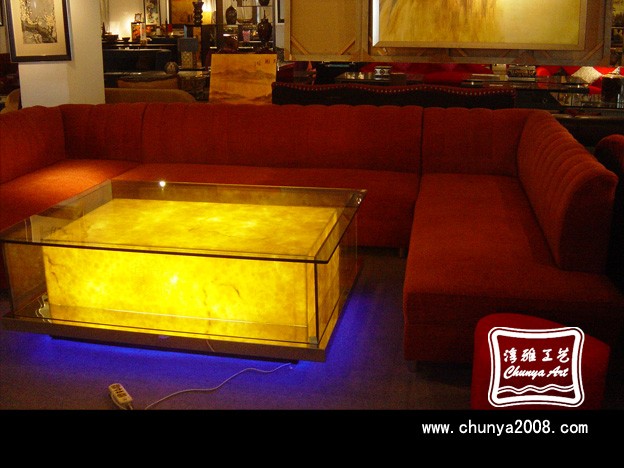 ——公司产品新潮时尚,造型精致,主要包括沙发、茶几(角几)、吧桌(吧台)、吧凳(吧椅)、摆柜(摆台)及包厢门、发光酒柜、发光楼梯等;