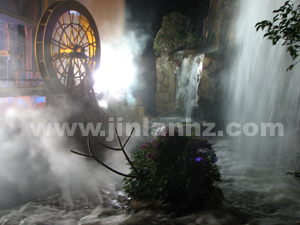 舞台喷雾是一个相对较新的名词,它取代了干冰、烟机造雾,传统的造雾主要特点是一次性造雾,雾效难以持续,雾量和时间等都不易控制,而且不环保、不健康,影响演员的表演。喷雾系统不但克服了传统喷雾机的缺点,可以多次使用,雾量、喷雾时间和持续时间都可以随心所欲地控制,而且雾效既环境又有益身心健康,它是利用市政供水,经过水处理程序进行粗滤、精滤,将水质中的杂质及钙镁离子分离,由反冲装置将其排出,高压系统对被过滤的水源进行加压,使其变成汽液两态的混合物,通过宝石喷头喷出,溶入空气中,形成自然雾气。