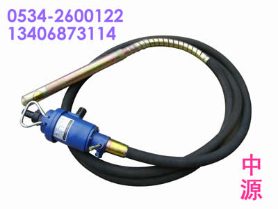 风动振动器主要技术参数:型号 振动棒直径 下部振动 振动频率 使用风压 (mm) (mm) (次/分) (兆帕) FRZ-50 45 3.2 2800~4200 0.4~0.6 我公司根据广大矿山用户在特定的工况和要求下,在原生产FH-65型插入式风动混凝土振动器的基础上,重新研制了一种以压缩空气为气源,叶片式气马达为动力的FRZ-50行星式混凝土振动器,软轴传动,具有振幅大、频率高、重量轻、结构合理、操作安全、维修使用方便等优点。不受电源、潮湿等条件限制,广泛适用于有压缩空气气源的建筑工程的施工中,为各种干硬性和塑性混凝土捣实作业,在含有瓦斯与煤尘的煤矿井下及其矿井“套边”水泥捣固工程尤为适用,使用绝对安全可靠。