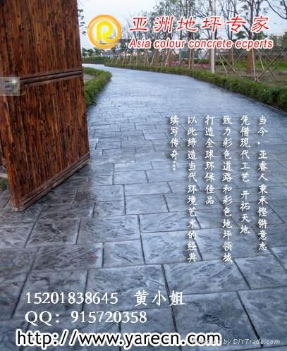 睿龙彩色艺术装饰混凝土(彩色地坪、艺术地坪、景观地坪、压模地坪、压印地坪、压花地坪、地坪材料)是一种防水、防滑、防腐的绿色环保地面装饰材料!是在未干的水泥地面上加上一层彩色强化料(起装饰和强化混凝土作用)及着色脱模粉(起二次着色和脱模作用), 然后用专用的模具在水泥地面上压印而成的压模地坪,压花地坪,压印地坪,彩色地坪,艺术地坪,装饰混凝土压花地坪。