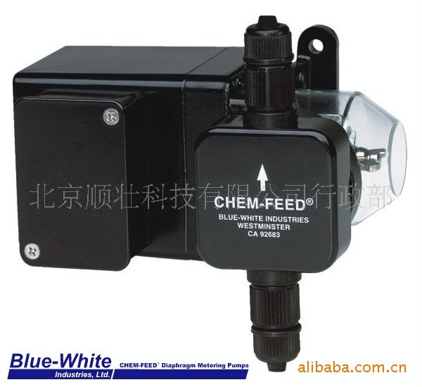 北京顺壮科技有限公司的加药泵产品出口意大利、美国、西班牙、加拿大、韩国、澳大利亚、南美洲、中东等国家。CHEM-FEED 隔膜式计量泵,特点:? 所有的滚珠轴承,耐久润滑的齿轮点击,使运行顺畅,安静,高效。 双球式进口和出口筒式陶瓷逆止阀,抗化学侵蚀PVDF阀体和配件,陶瓷阀球,Viton静态密封和TFE/P球座O型圈密封,无金属弹簧使用。? 输出量可达516 GPD. (加仑/日).? 输出压力可达125 PSI. ? 冲程调节量 4-100%,允许在高运行速率下的小剂量投加。? Teflon 特富龙涂层隔膜。? 耐久的环氧涂层的金属结构。? PVDF吸液阀(底阀),带有Viton和TFE/P的O型圈密封,陶瓷逆止阀可拆卸清理的过滤网。? 包括 3/8” 的吸药及输药管,配有弹簧式逆止阀的注药头和固定配件。参数:最大工作压力: 125 psi (8.6 bar)最大流体温度: 130°F(54°C)最大环境温度: 14°至110°F/-10°至43°C最大粘滞度: 1,000 百分之一泊(黏滞性单位),厘泊最大吸程: 10ft. 输出量调整范围: 4-100%冲程长度工作[负载]循环:连续外壳:NEMA type 1,(IP20)电压(amp draw): 115VAC/60Hz 1 ph (.74 amp max)230VAC/60Hz,1 ph ( 36 amp max)220VAC/50Hz.1 ph ( 31 amp max)24VAC/60Hz 1ph (3 40 amp max)12VDC (3 00 ampmaxl)24VDC(1.50 ampmax)电源连接:现场布线之接线盒毛重:8 Ib(3.6 kg)。 SEKO 西科TEKNA系列 投药计量泵.多种用途 简单的工作环境 SEKO TEKNA系列产品全部选用玻璃纤维增强的PP材料做成的具有lP65密封程度的坚硬外壳,此设计既有防水,又能避免化学腐蚀生锈和外部碰撞破损。有多种不同的安装方式可供选择:■挂墙式:(只需一个、二个或四个安装固定点)■水表座垫式■基垫式:(安装在水缸、水桶或现有的墙避托架上)■落地式 .多种用途 用途广泛 新型的TEKNA系列电磁隔膜化学计量泵采用数码驱动方式,该产品是意大利SEKO公司经过28年的丰富生产经验的积累以及SEKO遍布全球众多用户一贯支持和紧密合作的成果,这种多功能的计量泵依然保持了SEKO产品一贯以来的高品质和可靠性能。最快速的均衡投加 TEKNA系列计量泵可以在史无前例的400次数(脉冲)/分钟范围内操作,在较大的流量调节范围内,计量泵都能很均衡地进行投药。SEKO产品出厂前均在最大流量时测试15小时以上。