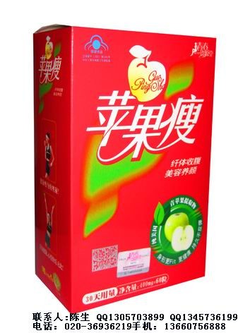 从天然青苹果中萃取苹果醋酸,从而实现高效瘦身美容。苹果瘦通过苹果酸脂进入脂肪细胞,让脂肪液化而自然流出,促进新油脂在肠壁的吸收,加快体内脂肪燃烧分解及能量转化,促进新陈代谢,纯天然成份安全健康,减肥的同时,还能达到美容养颜的效果