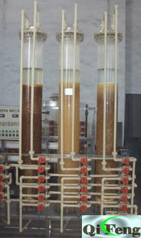 ◆ 混合离子交换柱(混床):混床是将阳、阴树脂按一定比例(1:2,以便阳、阴树脂同时达到交换终点而同时再生)装入混合柱而成,实际上它组合成了水中的H+和OH_立即生成电离度很小的水分子(H2O),几乎不存在阳床或阴床交换是产生的逆交换现象,故可以使交换反应进行得十分彻底,因而混合床的出水水质优于阳、阴床串联组成的复床所能达到的水质,能制取纯度相当高的成品水。