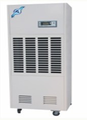 本产品属冷冻式除湿机,整机有压缩机、热交换器、风扇、机壳及控制器组成,其工作原理是:由风扇将潮湿空气抽入机内,经过制冷系统(压缩机,蒸发器,冷凝器)相互作用下凝结成霜,系统自动升温化霜成水流入盛水箱,产生出干燥空气排出,如此循环使室内湿度降低,潮湿空间逐步达到干爽的效果。