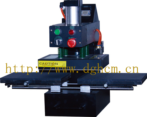 产品简介:详细说明: 产品型号: HCM-19 名称:新款气动双工位烫画机 技术参数: 电 压:110v 220V 380V 功 率:2250W 温度范围:0-399℃ 时间控制:0-999ses 气 压:8kg 工作台尺寸: 40*50 cm 包装 尺寸: 110*120*160 cm 重 量: 130kg