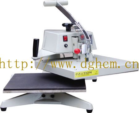 操作流程: 1.启动电源开关,电源指示灯指示; 2.握住手柄将发热板向右推开; 3.将温控器调至所需温度(通常120℃-200℃); 4.将定时器调至所需时间(通常5秒-20秒); 5.将衣物平放在下烫板上,叠上烫画纸(请注意烫画纸的正反面),将发热板拖回原处,将手柄用力向下压,直至终点; 当指示烫印的设定时间到时,警报提示(蜂鸣器响),将手柄向上回原位。