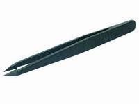 产品简介:防静电镊子采用PPS+碳纤合成塑胶加工而成,不析出黑色粉尘,避免传统防静电塑料含有碳黑而污染产品。具有良好的硬度、弹性,耐高温,耐酸碱,使用方便、灵活,可有效泄放静电电荷等特性。适用于微敏元件的生产、包装等用途。