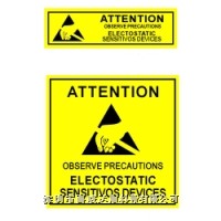 防静电标签,材质:不干胶,图片里长方形的规格为:25*50MM 1000个/卷;正方形的规格为50*50MM 500个/卷。是一种特殊的聚酰亚胺薄膜,具有高温永久压敏丙烯酸粘合剂及高度的不透明性,白色高光涂层是为热转移打印而特别设计的,采用面材静电原理.