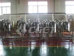 糖化部分由糊化锅、糖化锅、过滤槽、煮沸锅、漩沉槽和换热器构成,并且各部件之间通过管道接通,糊化锅和糖化锅连接有原料输入管道;发酵部分由6-8个发酵罐构成,发酵罐之间连接有洗涤杀菌管道、物料管路、冷媒回流管道和C02管道。同时,在发酵罐上配备了具有国际先进水平的JMC-1型酵母浓度检测仪,实现了在线检测,充分保证了每一时该酵母细胞数检测的准确性,取得了啤酒发酵过程中微生物细胞数检测的历史性突破。