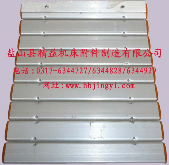 盐山县精益机床附件制造有限公司专业生产铝型材防护帘,性能及用途:主要用于保护机床导轨面不受金属屑、冷却液的侵蚀,具有防屑、防冷却液等功能,从而延长机床精度寿命。