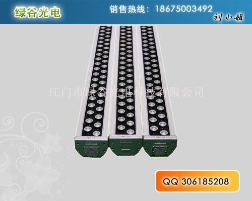 大功率LED洗墙灯是一种以大功率LED为光源,由红、绿、蓝组成混合颜色变化的投射照明灯具,可产生256灰度变化,智能控制器达到同步效果,并可接入DMX控台。用户可自己输入资料进行编程控制。该洗墙灯采用数码管地址,同时该洗墙灯内置固定程序,可实现同步、自联功能。该洗墙灯密封可靠,可调节投光角度、位置,使之处于最佳位置,达到最满意的照明效果。(缔造绿色低碳生活,选用绿谷LED灯饰)