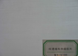热熔胶片以经过软合成乳胶浸渍的水刺无纺布为基布。一般只单面涂布PU胶,这种胶具有很好的粘附性和回弹性。