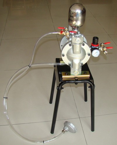 气动双隔膜泵浦是以压缩空气为动力,推动膜片往复运动并改变泵的气压腔容积,使气压腔内的压力发生交替变化,而气体所泵送之液体在交替变化的压力作用下流动,以至将液体由一处输送至另一处,更由于作业时不会产生火花,因此可使用在安全性要求较高之涂装场所,举凡涂料、油墨、染料、乳胶、陶瓷釉料、食品工业原料、食品添加物、工业废水、油料、水性溶剂、民生用品清洁剂、化工原料、鞋业胶料、锌铝压铸、塑胶射出成型喷离形剂之流体输送,可衔接一般空气喷枪、静电喷枪、自动喷枪做涂装使用,此隔膜泵具体积小,重量轻、操作简便,输送涂料均匀,传送量大等之诸多优点。