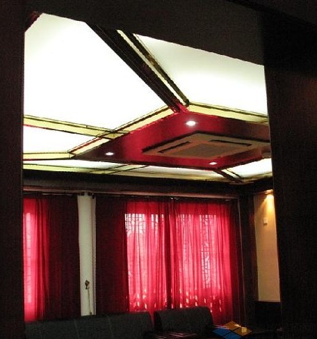 (5) 软膜天花并不附属在固有的屋顶上,而是与屋顶形成一个夹空层,在此空间内可以安装消防管道、空调管、电源线管等设备。