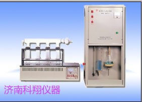 KX系列凯氏定氮仪的组成: 凯氏定氮仪主要由电加热消化炉和蒸馏器两大部分组成。 电加热消化炉有4孔、6孔、8孔、12孔、16孔、20孔可选。可根据用户的检测量的大小选配合适的消化炉,消化一批样品约需40分钟左右(依样品含氮量)。 KX系列蒸馏器有A、B、C三种型号,特点分别为: A 型蒸馏器:蒸馏样品时间短,采用新一代水泵运用了先进的无阀控制技术。 B 型蒸馏器:蒸馏器内进蒸馏水,备有自动加热与补液装置,主要部件采用进口器件。 C 型蒸馏器:在主要部位采用布耐腐蚀的ABS材料,同时还具有定时接收功能,方便操作。