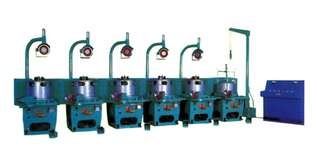 拉丝机 一、滑轮式连续拉丝机: 此机特点生产效率高,总压缩率大,拉拔速度快、占地面积小,主要技术参数如下: a.型号:LW1-6/550 b.卷筒直径(mm):550 c.最大进线直径(mm):6.5 d.最小出线直径(mm):2.2 e.成品卷筒直径(rpm):27~168 f.单机功率(kw):15~22 g.单机重量(kg):1400 h. 外形尺寸(mm):6050×1685×210