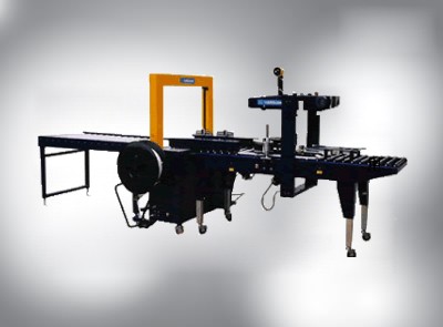 封箱机(纸箱胶带封口)+高解析喷码机(日期、批号、厂名等信息喷印打码设备)+自动打包机(自动打出两道PP带。进行纸箱捆扎包装)